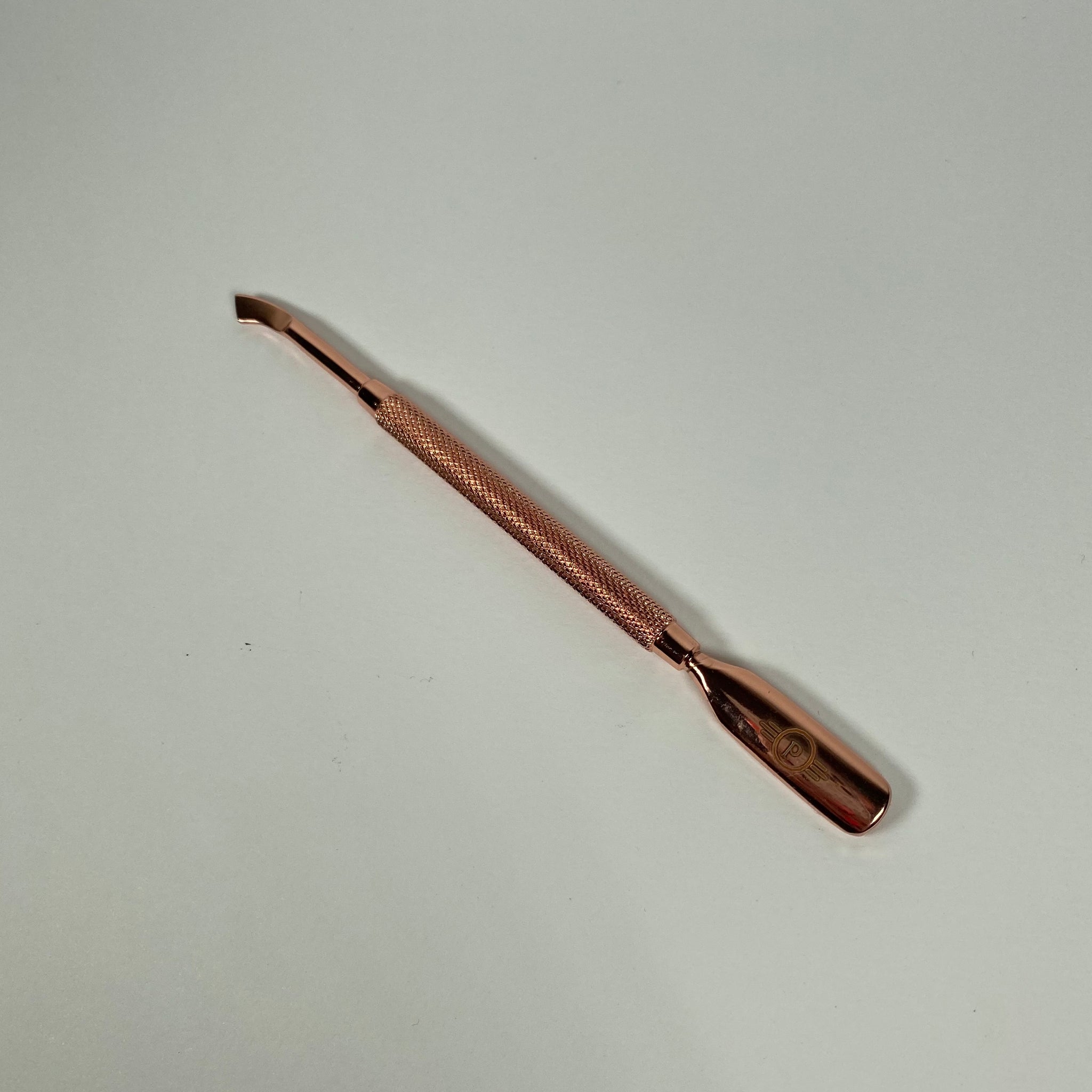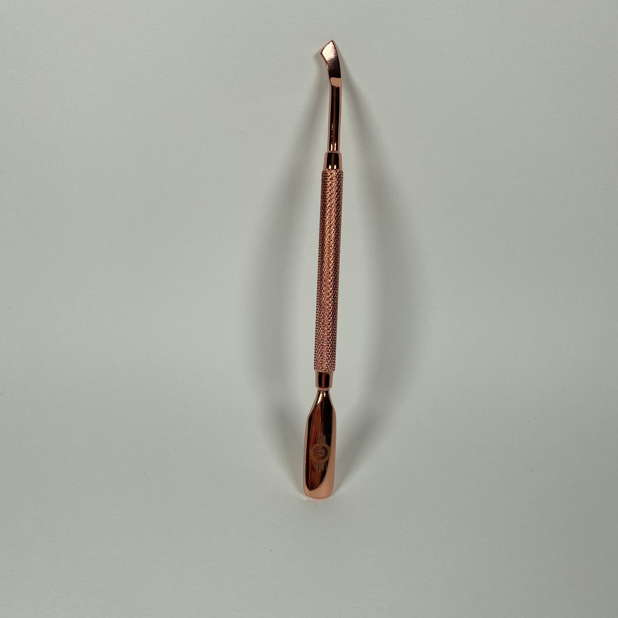 Stainless steel cuticle pusher in rose gold. Double ended tool.